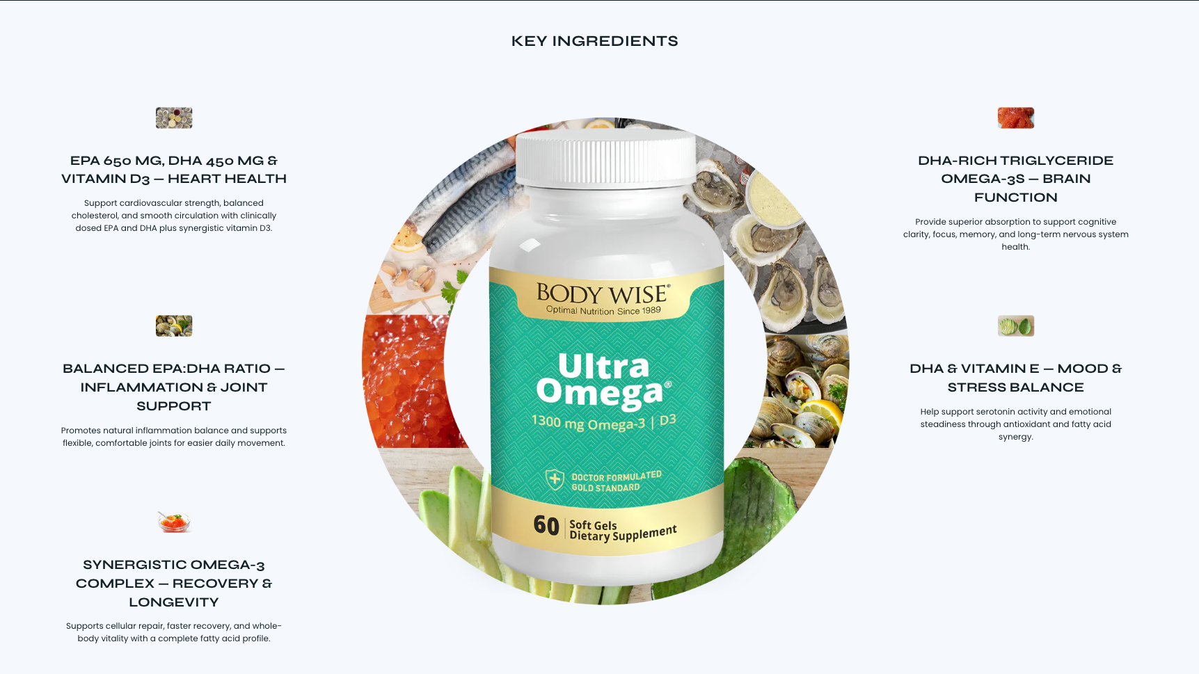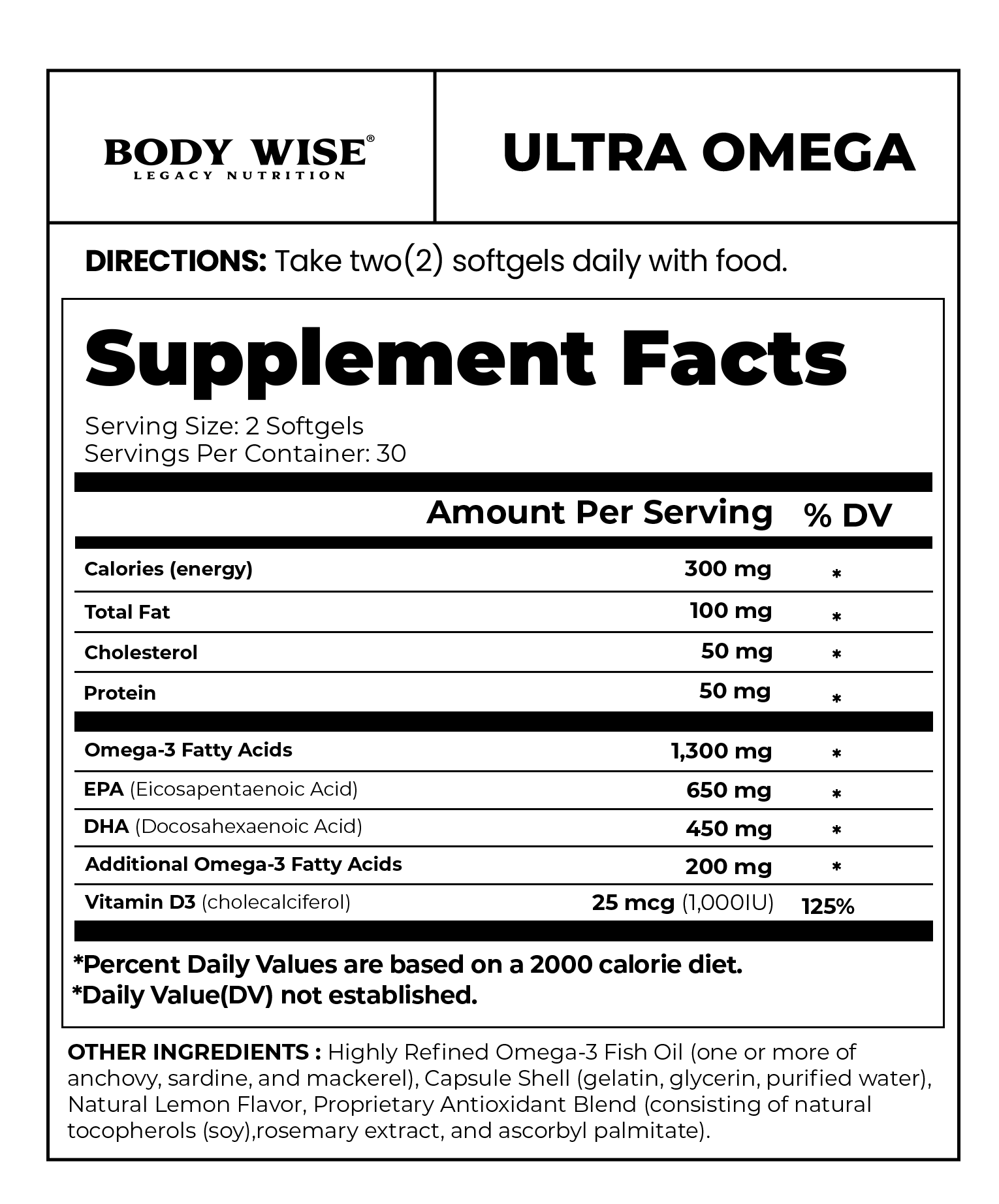 Finished with a natural lemon flavor to eliminate fishy aftertaste and enhanced with vitamin D3 for immune support, Ultra Omega reflects Body Wise's long-standing commitment to purity, potency, and science-driven nutrition.